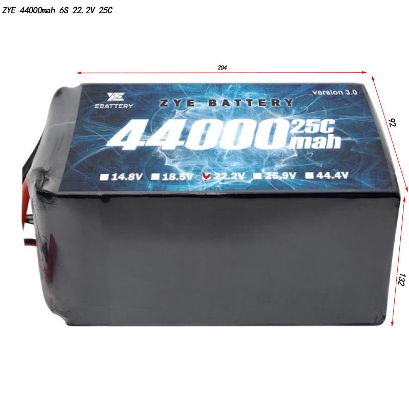 | 44000mAh | 6S1P (22.2V) | 4990g(±10g) | 204*92*132mm | 976.8WH | 25C 1100A | 50C 2200A |
