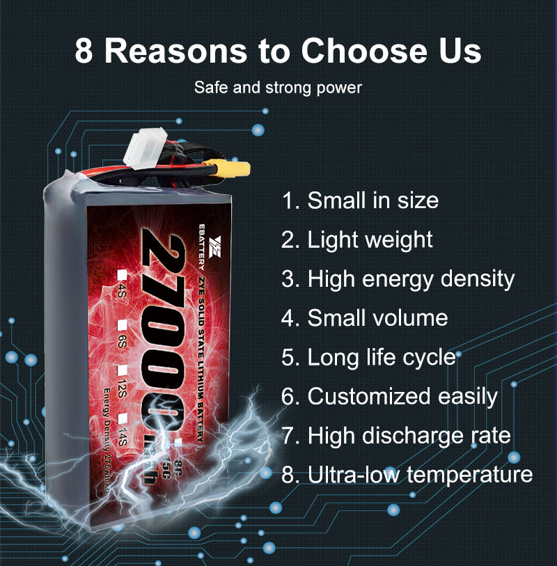 أكثر من 10 سنوات من الخبرة: مع أكثر من عقد من الخبرة في إنتاج بطاريات الليثيوم ، نحن قادة الصناعة في حلول بطاريات عالية الأداء ، بما في ذلكتسليم سريع 27000mah 27ah 28000mah28ah 6s 7s 12S 20S HV و Talk State Solid Solid Pack.