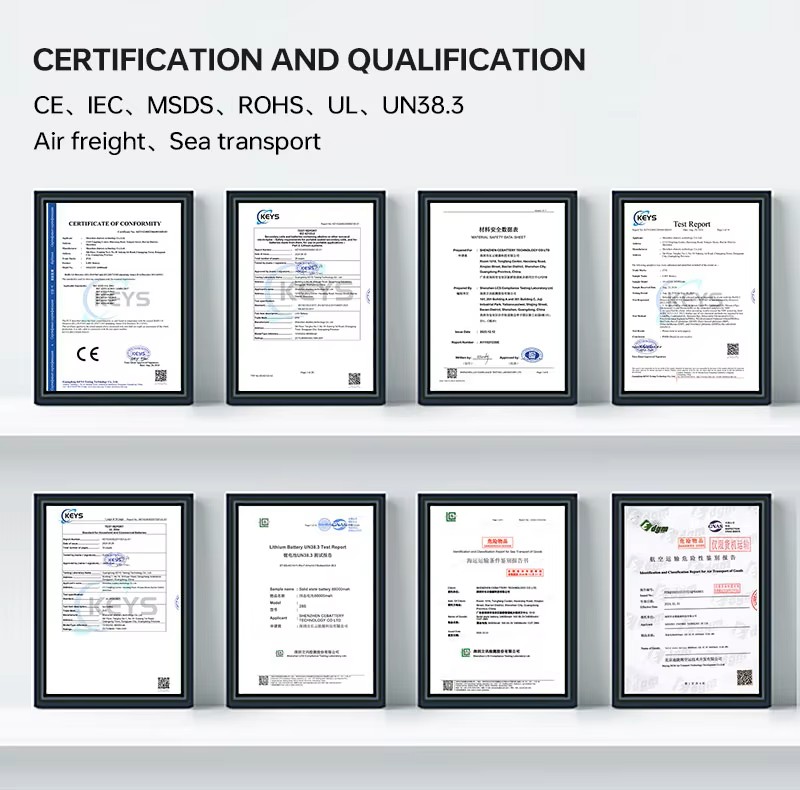 ملكنابطاريات الحالة الصلبة الجديدةمعتمدة لتلبية المعايير الدولية، مما يضمن السلامة والموثوقية: