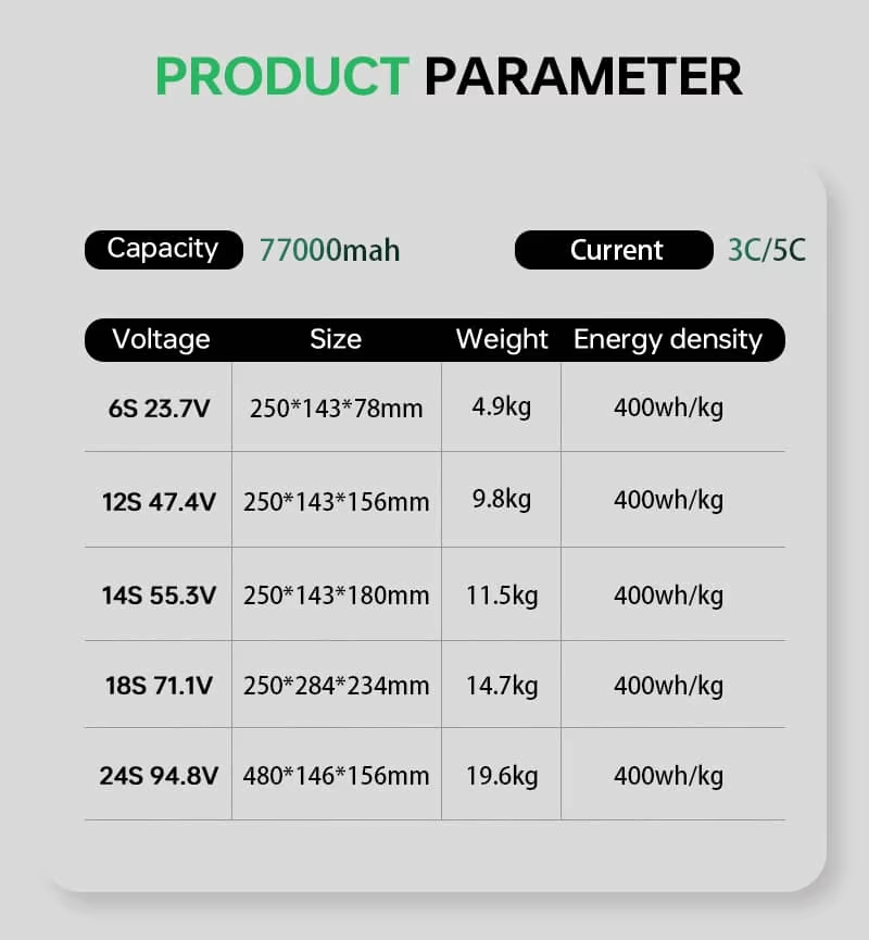 كثافة طاقة تصل إلى 400 وات/كجم: توفر أوقات طيران طويلة واستخدامًا ممتدًا.